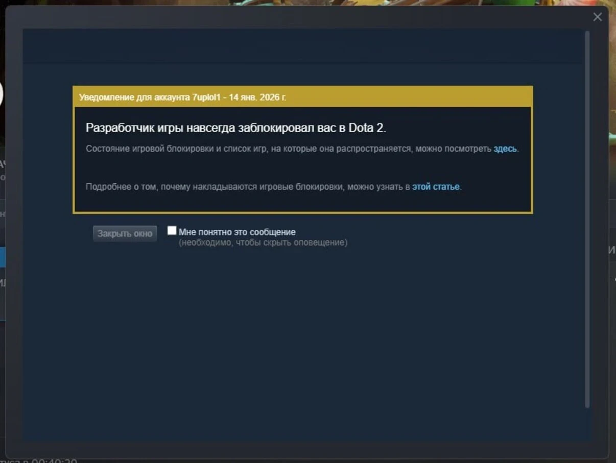 На данный момент Игорь не дал развернутых комментариев о том, что могло послужить причиной бана. В Dota 2 такие меры (вплоть до 2038 года) обычно применяются за: