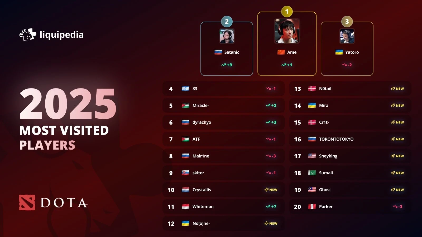 Главные новости » Эксклюзив » Ame обошел Yatoro в Dota 2 и стал самым популярным игроком 2025 года на Liquipedia