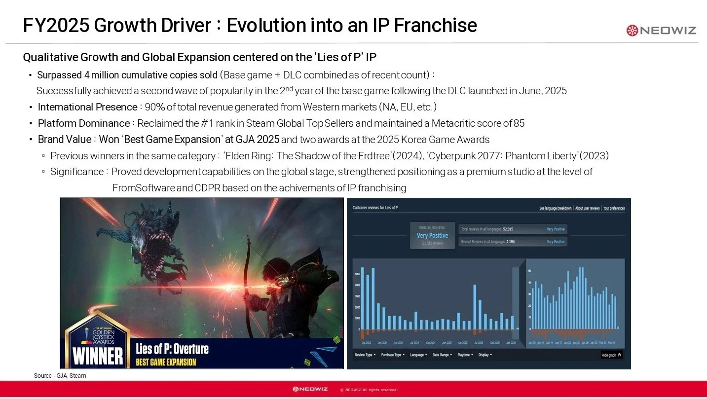 Neowiz подтвердила, что вышедшее в июне дополнение окатило Lies of P новой волной популярности. Причём 90% выручки (а следовательно и продаж) приходится на западные рынки — сама студия базируется в Южной Корее.