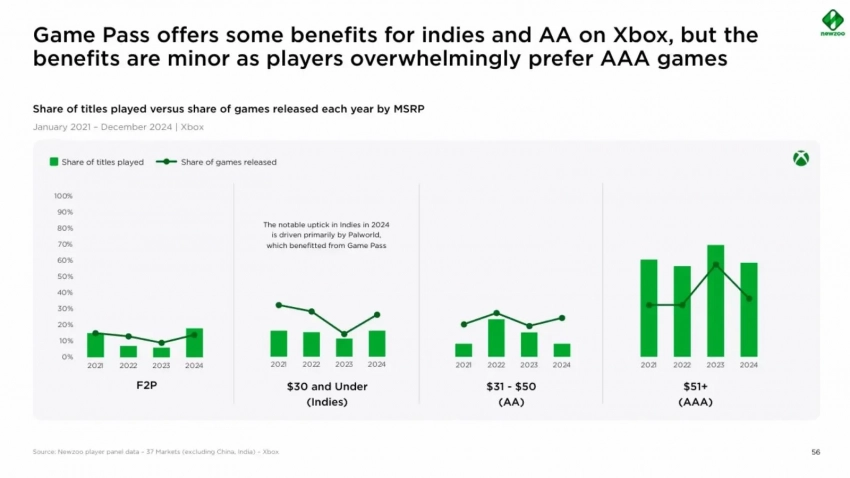 • На Xbox и Game Pass соотношение между разными категориями игр более гармоничное.