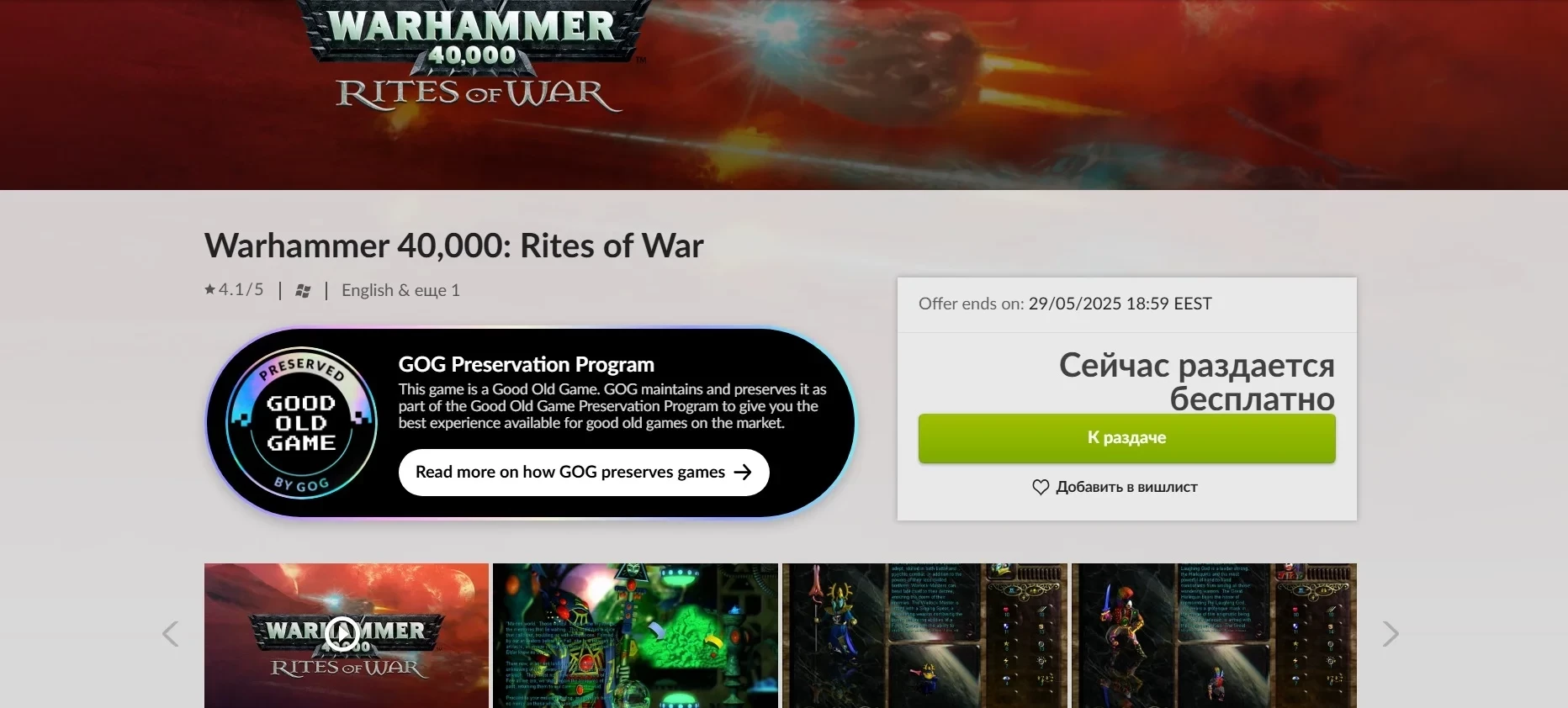 Самое интересное о кино на YouTube канале Игромании!Обложка: игра Warhammer 40 000: Rites of WarВ GOG проходит акция с бесплатной раздачей пошаговой стратегии Warhammer 40 000: Rites Of War. Она продлится до 29 мая включительно.