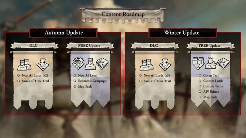 После релиза Stronghold Crusader: Definitive Edition ждут два крупных контентных обновления: осеннее и зимнее. Они выйдут вместе с двумя платными DLC — в каждом из них нас ждёт два новых противника и специальные испытания.