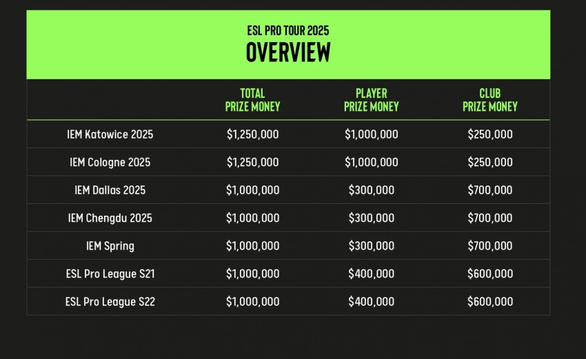 ESL представила расписание турниров на 2025 год и рассказала подробнее о выплатах