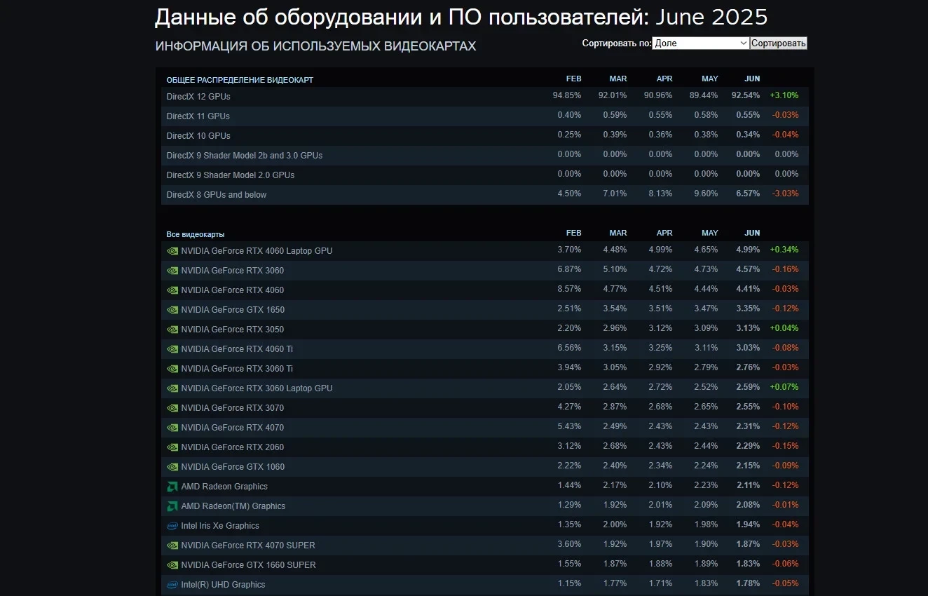 Статистика видеокарт