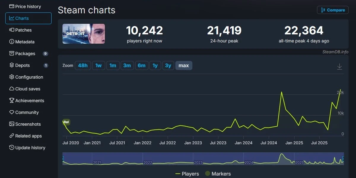 Главные новости » Все об играх » Detroit: Become Human обновила рекорд по пиковому онлайну в Steam благодаря распродаже