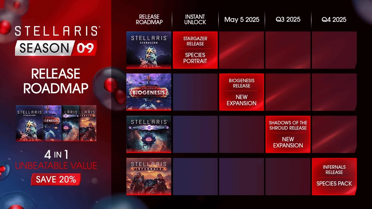В конце года, в четвертом квартале, выйдет Infernals Species Pack, добавляющий в игру новые виды, которые адаптировались к экстремальным условиям высоких температур. Игрокам предстоит решить, как использовать эту уникальную силу для изменения галактики.