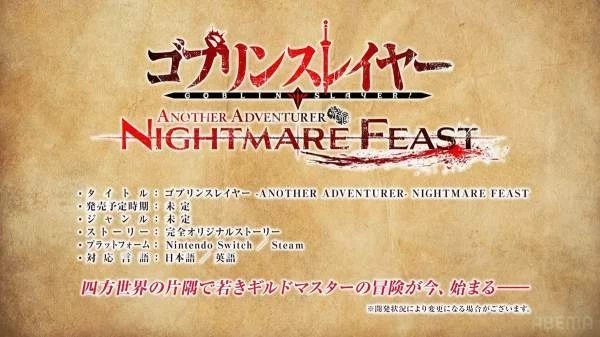 Компания The Goblin Slayer 2 Production Committee анонсировала видеоигру по мотивам одноименного ранобэ. Объявлено, что тайтл под названием Goblin Slayer Another Adventurer: Nightmare Feast расскажет какую-то совершенно новую историю и выйдет как на PC, так и на Nintendo Switch сразу на японском и английском языках.