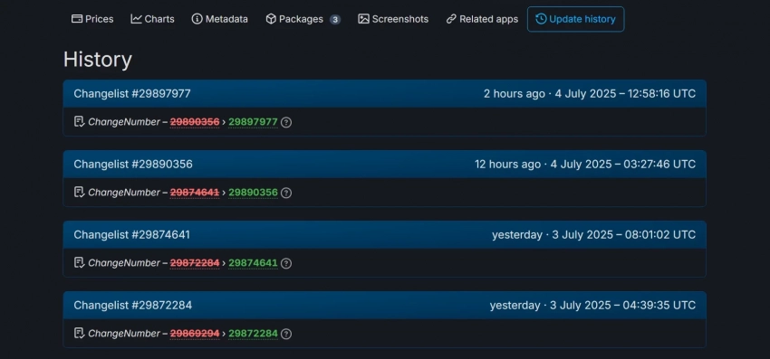 Так, в период с 30 июня по 4 июля Hollow Knight: Silksong пережила семь обновлений в базе данных Steam. Например, за сегодняшний день было замечено два изменения параметра ChangeNumber. Однако доходчивое объяснение со стороны администрации SteamDB разбивает оптимистичные надежды поклонников.